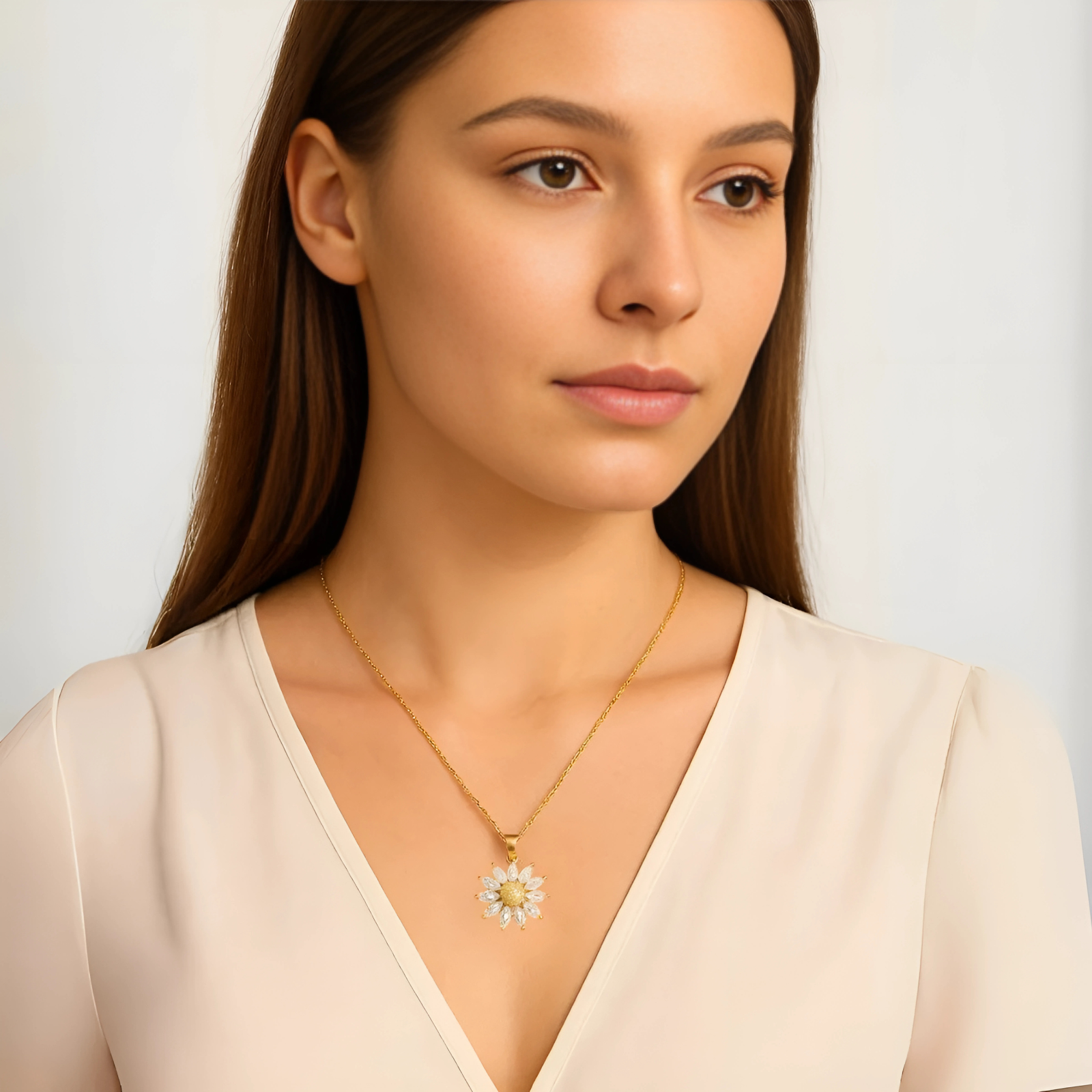 Você já pensou em surpreender quem você ama com um presente cheio de significado? Imagine o brilho nos olhos dela ao abrir uma caixinha especial e encontrar um delicado colar de girassol, símbolo de luz, alegria e amor eterno.O Colar Girassol – O Presente que Diz ‘Eu Te Amo’ foi feito para transformar momentos simples em memórias inesquecíveis. Com design elegante, ele transmite carinho e romantismo de uma forma única, tornando-se muito mais do que uma joia: é uma declaração de amor.Perfeito para presentear em aniversários, datas especiais ou simplesmente para dizer o quanto ela é importante, este colar vem acompanhado de uma linda caixa de presente, pronta para emocionar.